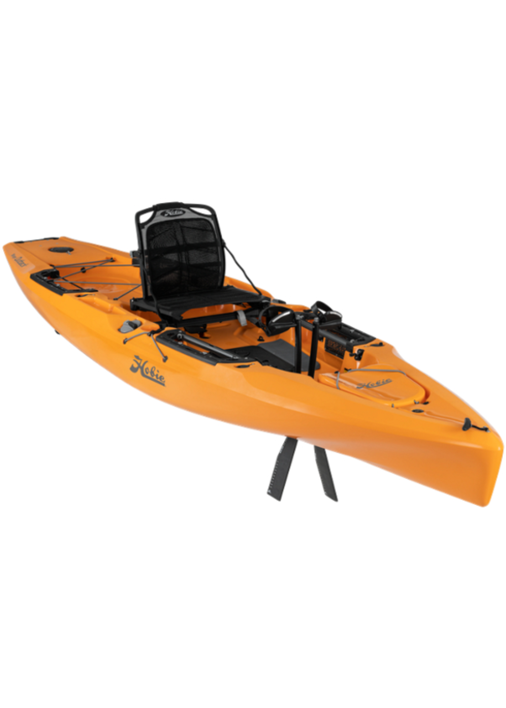 This fully-loaded fishing machine is built for every conceivable fishing expedition, whether you’re prowling the ocean for monster gamefish or stalking bass in your favorite freshwater fishing hole. Hobie has advanced the sport of kayak fishing with Kick-Up Fins that automatically retract upon impact. The extra-wide standing deck offers an improved casting platform and convenient vantage point for sight fishing, allowing for superior vision from above while the revolutionary Guardian Transducer Shield gives you multidimensional vision below. The adjustable Vantage CTW seat provides 1.5" of extra width and lumbar support for unmatched room and comfort for long days on the water. The Hobie H-Rail with integrated patented RAM® Hand-Track™ and numerous high-capacity storage compartments deliver the ultimate customization and organization in accessory mounting, ensuring that all of your gear is at your fingertips. Powered by the MirageDrive 180 with Kick-Up Turbo Fins, this fine-tuned angling vessel is highly versatile, fast, quiet, and exceedingly nimble. Featuring our Kick-Up Rudder system with dual steering capabilities, combating drift and navigating tight water has never been easier.